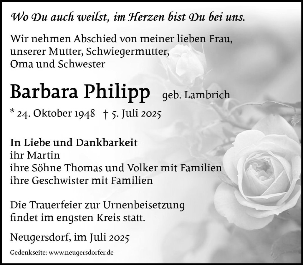 In stillem Gedenken an Frau Barbara Philipp.