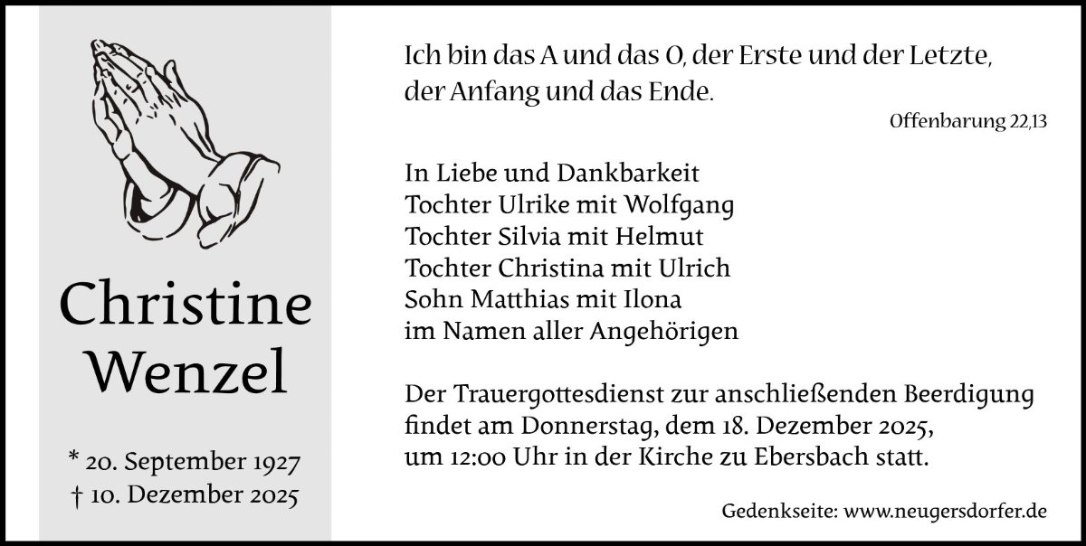 In stillem Gedenken an Frau Christine Wenzel.
