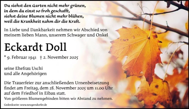 In stillem Gedenken an Herrn Eckhardt Doll.