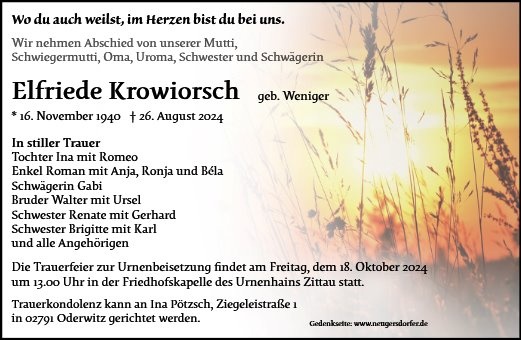 Sprechen Sie im Kondolenzbuch den Hinterbliebenen Ihr Beileid aus und teilen Sie persönliche Gedanken und Erinnerungen mit anderen.