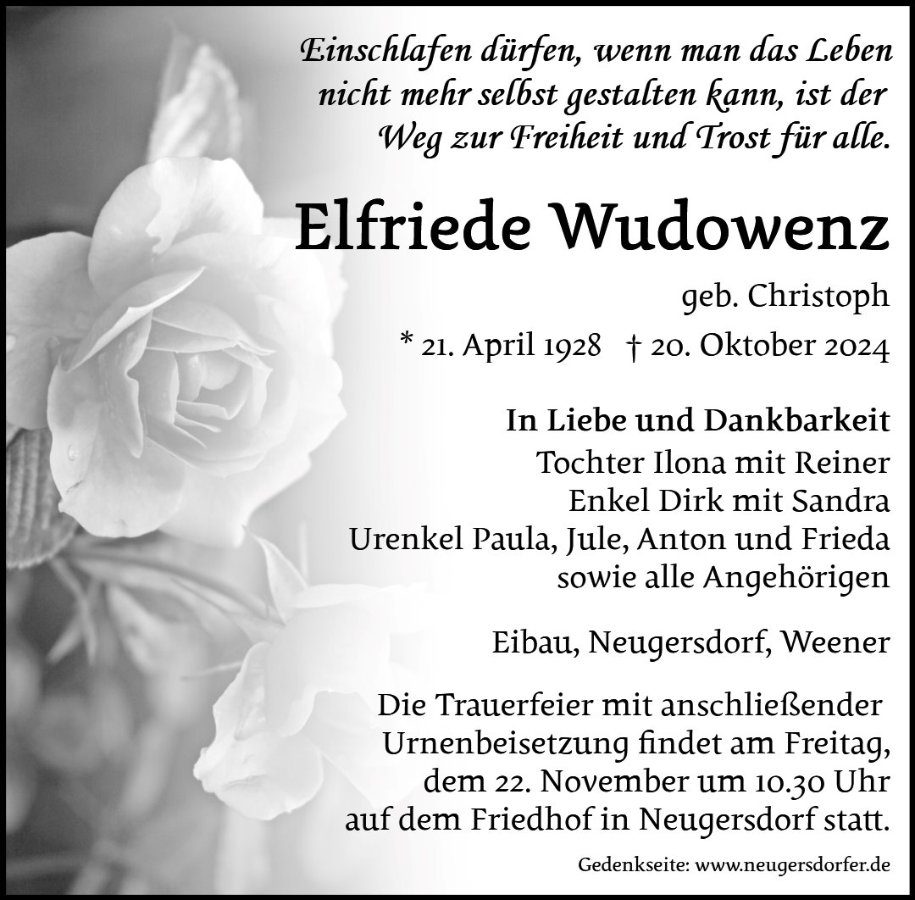 In stillem Gedenken an Frau Elfriede Wudowenz.