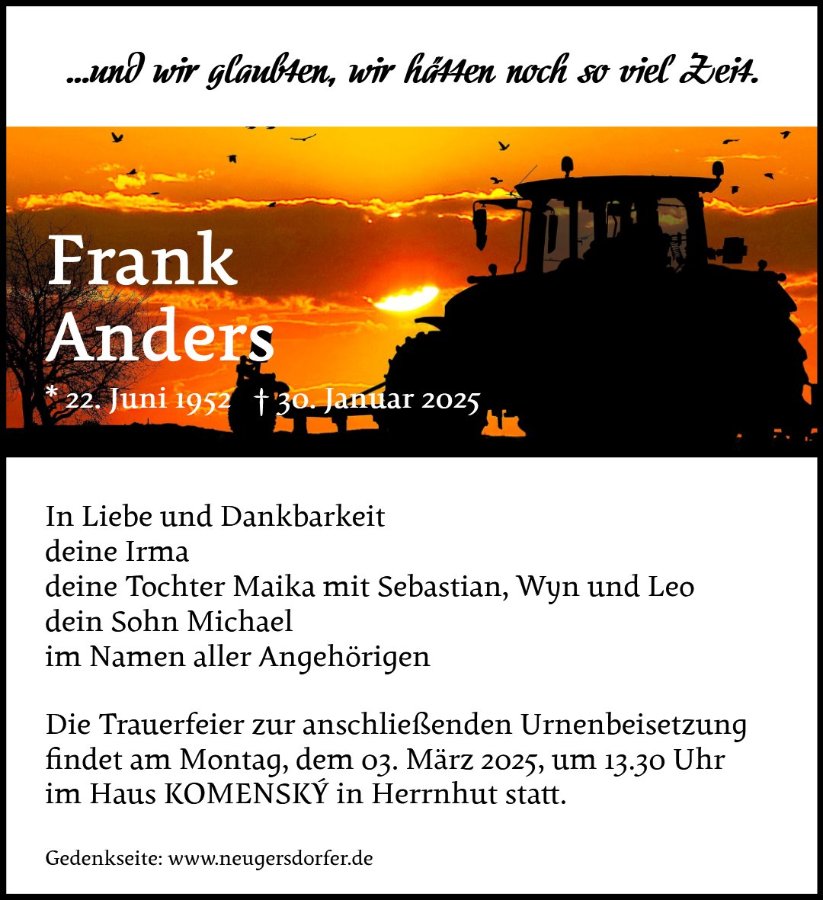 Frank Andersgestorben am 30. Januar 2025