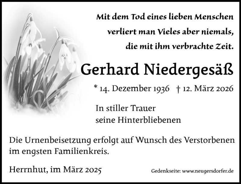 In stillem Gedenken an Herrn Gerhard Niedergesäß.