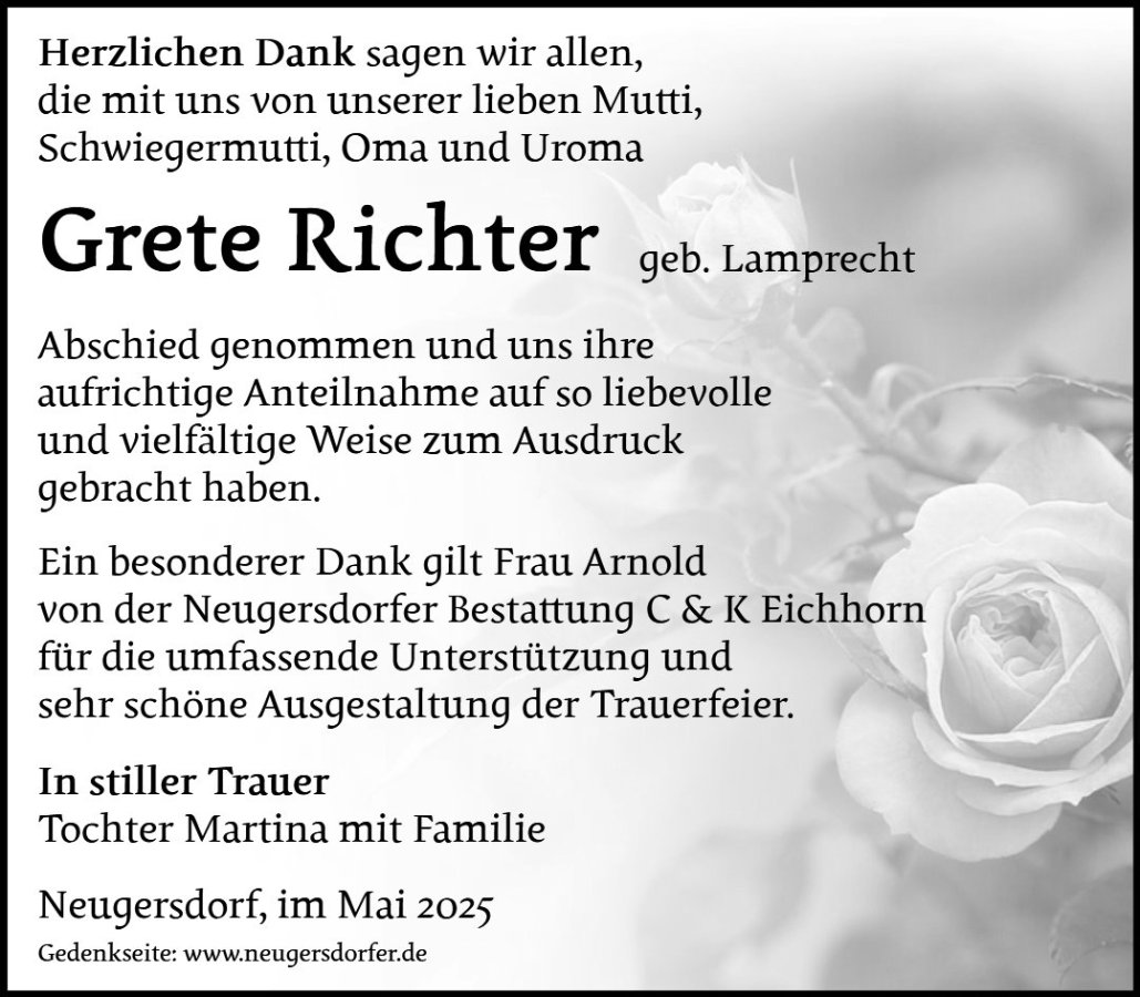 In stillem Gedenken an Frau Grete Richter.