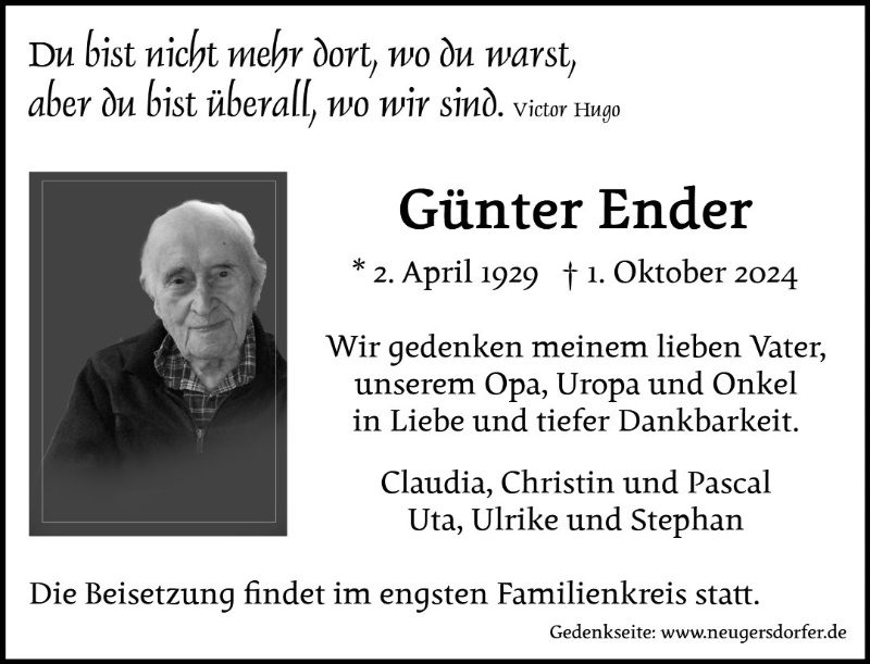 In stillem Gedenken an Herrn Günter Ender.