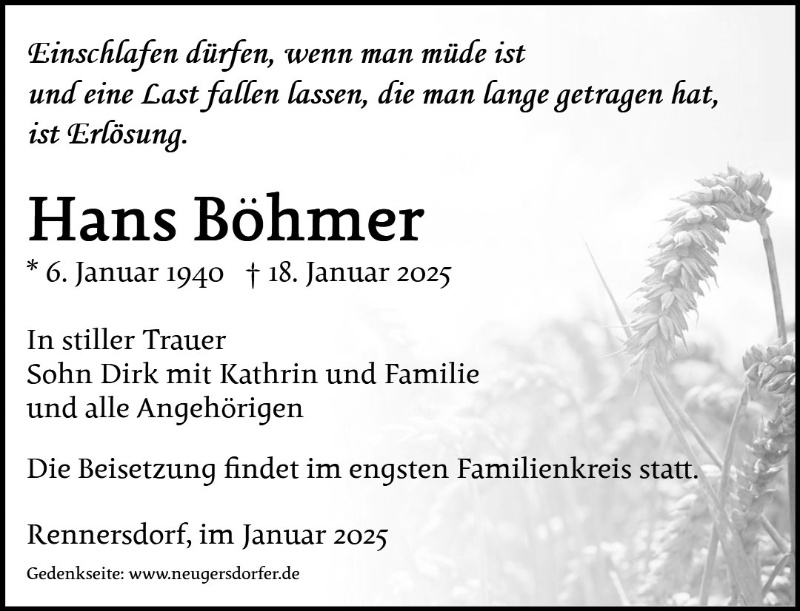 Geliebt und unvergessen und In aller Stille bist du nun von uns gegangen ein ewiges gedänken an dich Hans Böhmer