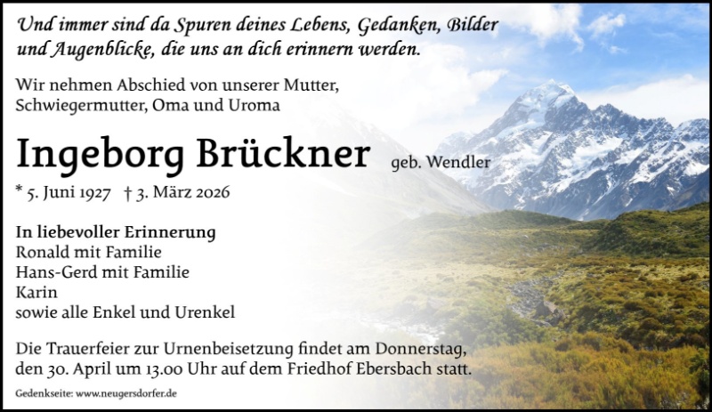 In stillem Gedenken an Frau Ingeborg Brückner.