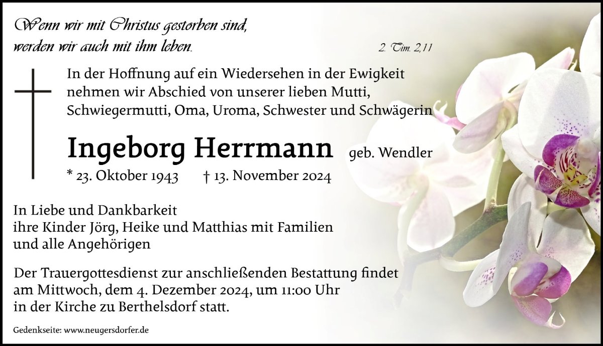 In stillem Gedenken an Frau Ingeborg Herrmann.