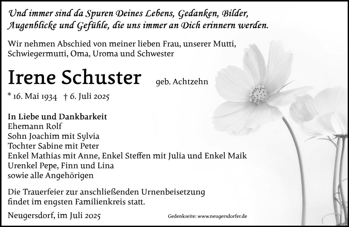 In stillem Gedenken an Frau Irene Schuster.