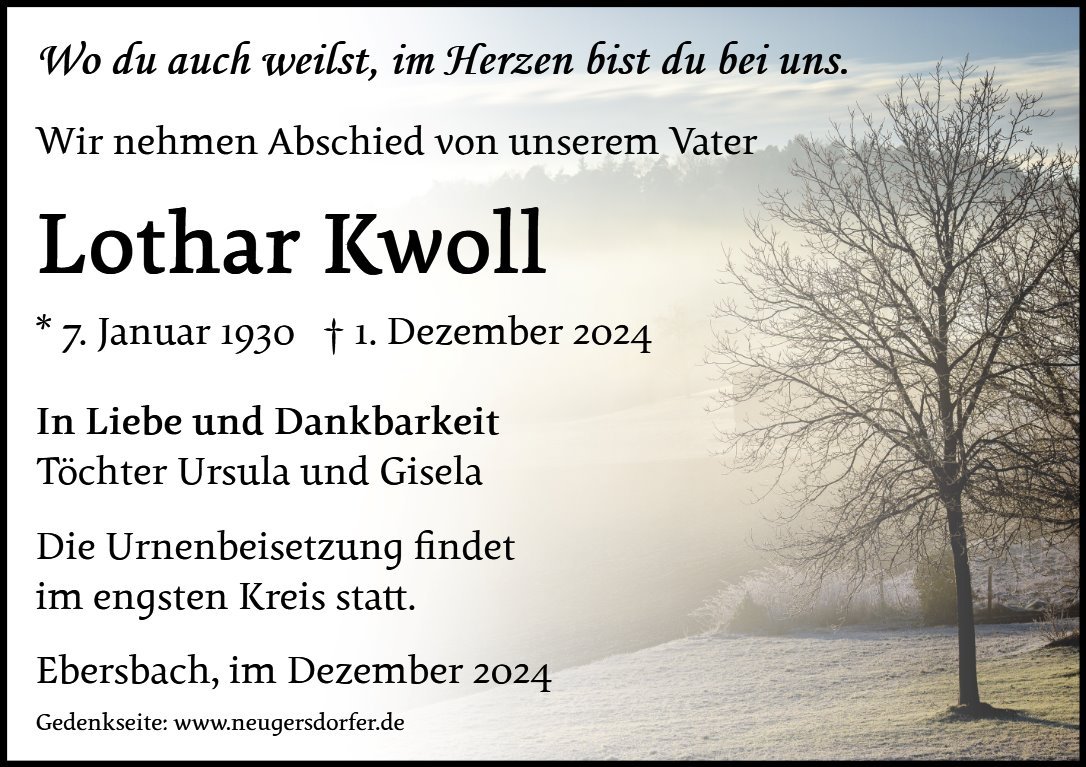 In stillem Gedenken an Herrn Lothar Kwoll.