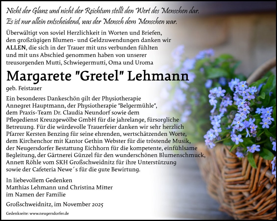 Margarete Lehmanngestorben am 4. Oktober 2025