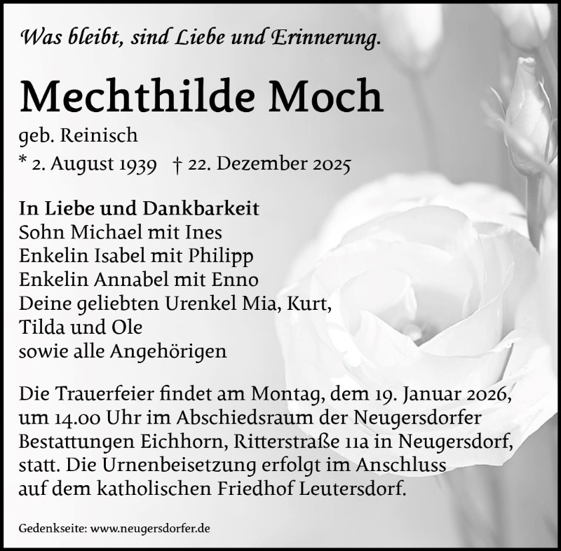 In stillem Gedenken an Frau Mechthilde Moch.
