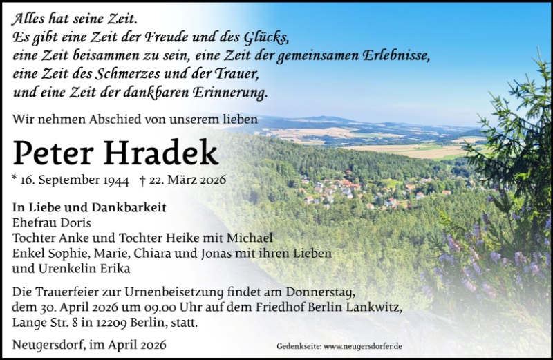 In stillem Gedenken an Herrn Peter Hradek.