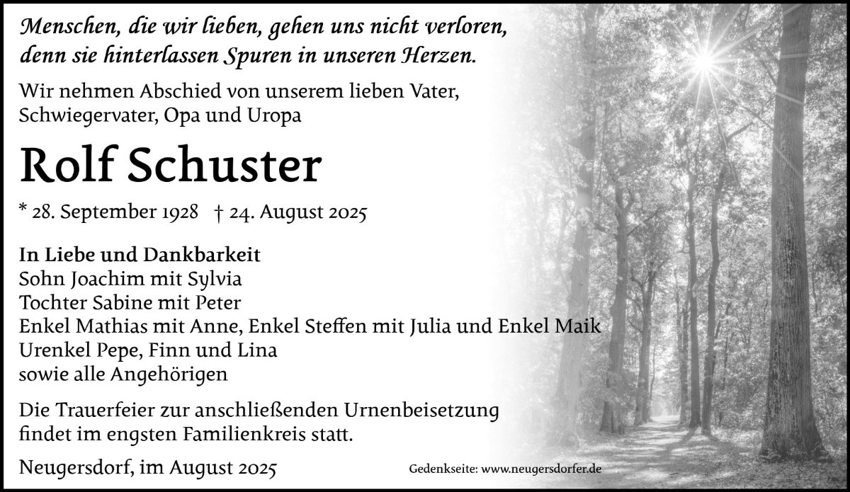 In stillem Gedenken an Herrn Rolf Schuster.
