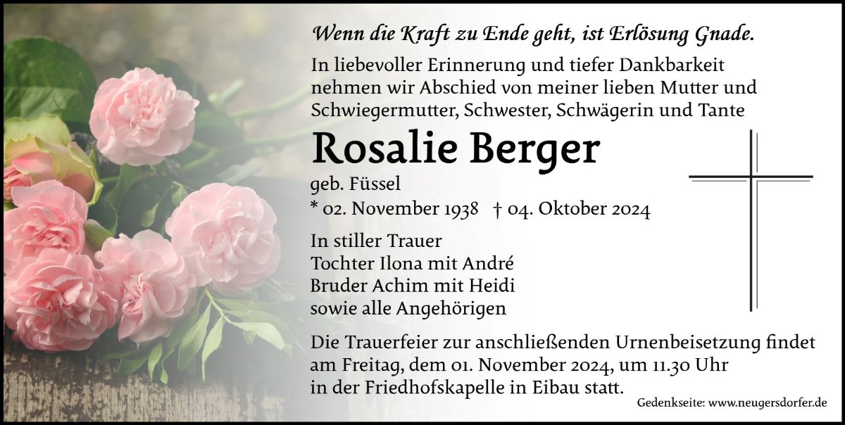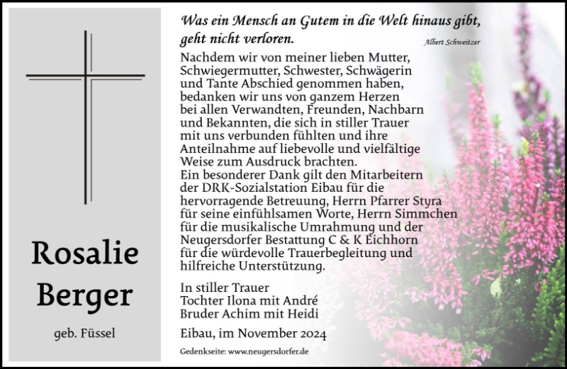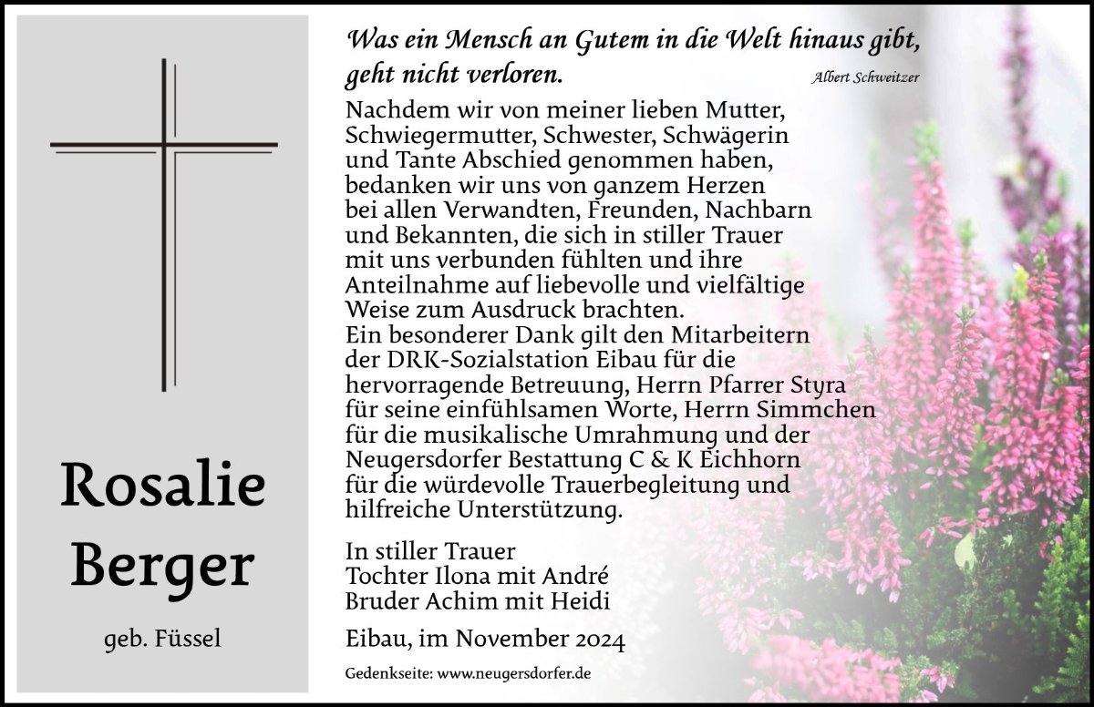 In stillem Gedenken an Frau Rosalie Berger.