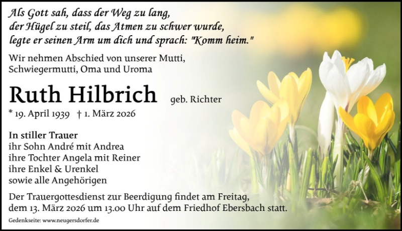 In stillem Gedenken an Frau Ruth Hilbrich.