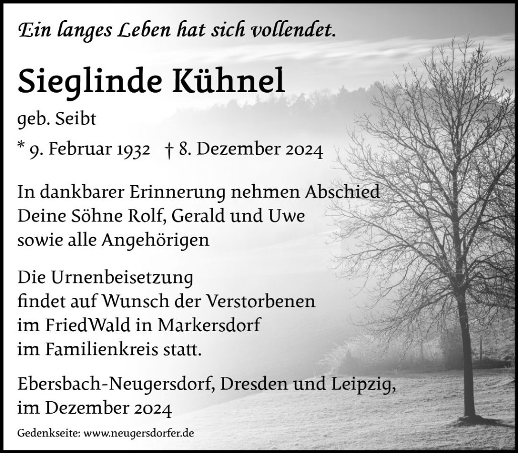In stillem Gedenken an Frau Sieglinde Kühnel.