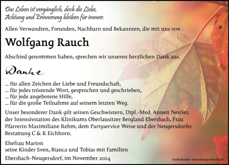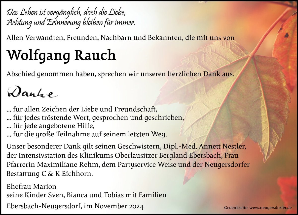 In stillem Gedenken an Herrn Wolfgang Rauch.
